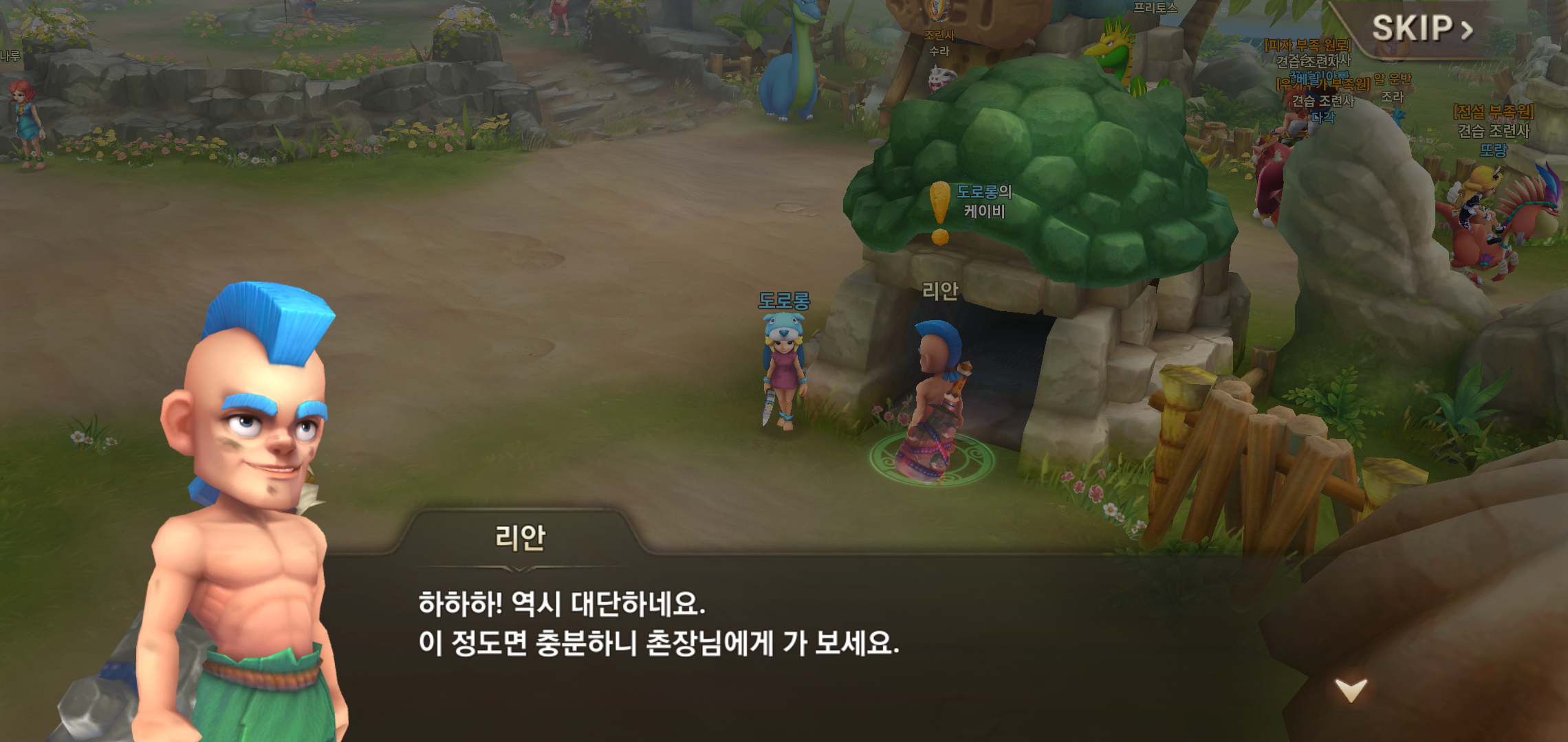 마을 선택과 함께 탈것을 타고 이동하니 이미 플레이를 시작한 유저들이 곳곳에 자리잡고 있더군요. 다양한 펫을 포획하고 싶은 마음이 굴뚝 같았지만, 우선 조련사 레벨을 진행하는 것이 급선무인만큼 최고의 레벨업 방법인 퀘스트를 진행했습니다.