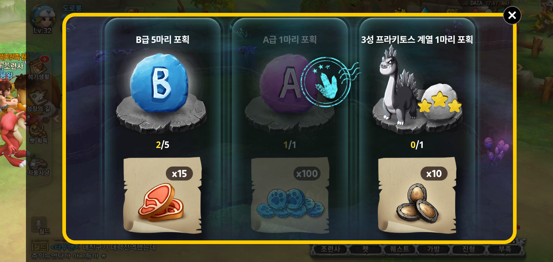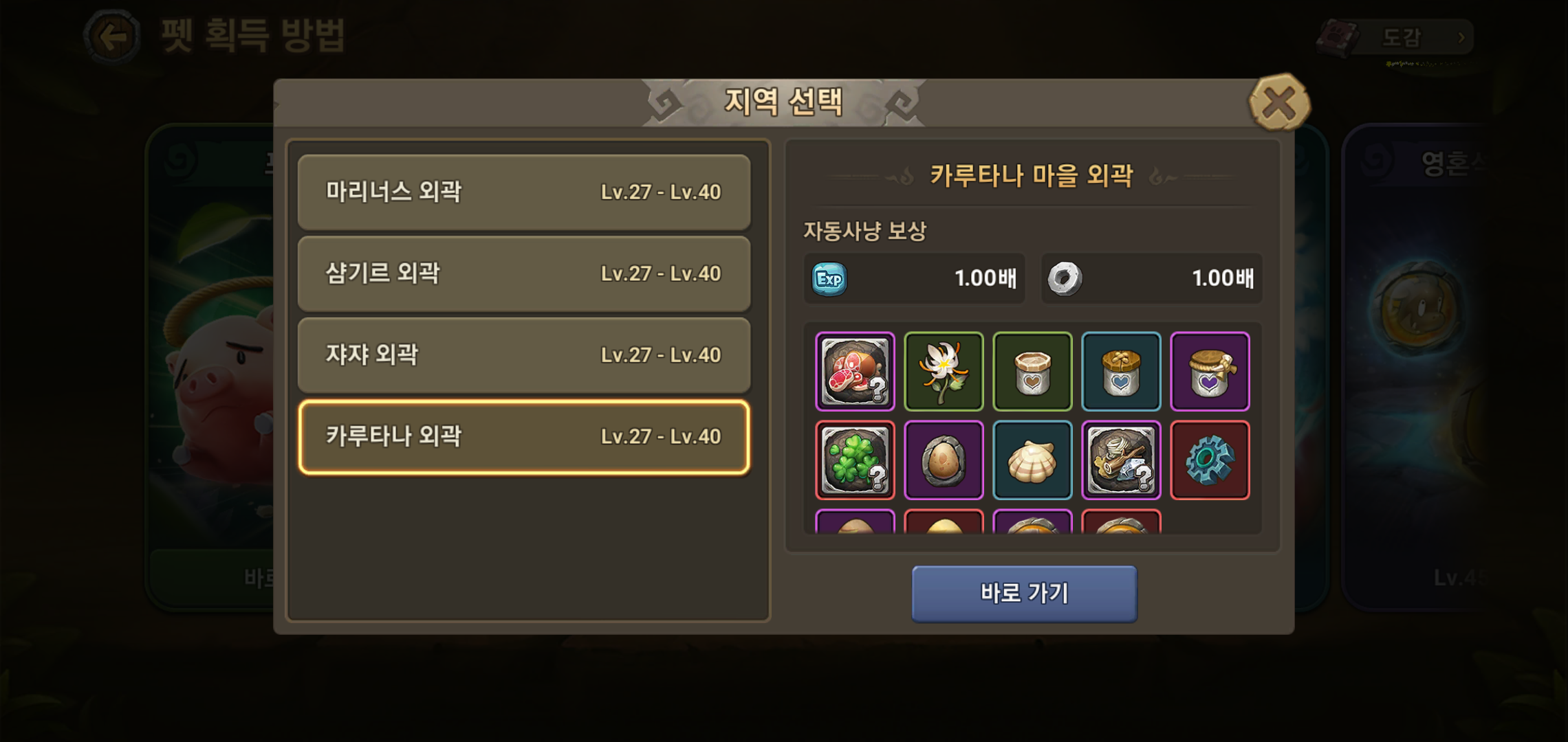 자동사냥을 통해 펫을 획득하는 방법도 가능합니다. 파티를 구성해 자동사냥을 시작하면 펫 육성에 필요한 아이템이라던가 조개, 알, 영혼석등을 획득해 새로운 펫을 획득할 수 있습니다. 특히 자동사냥 파티의 경우 레벨이 높은 유저와 파티를 구성하면 보다 빠르게 클리어 할 수 있어 시간적인 부분에 있어서도 유리합니다.