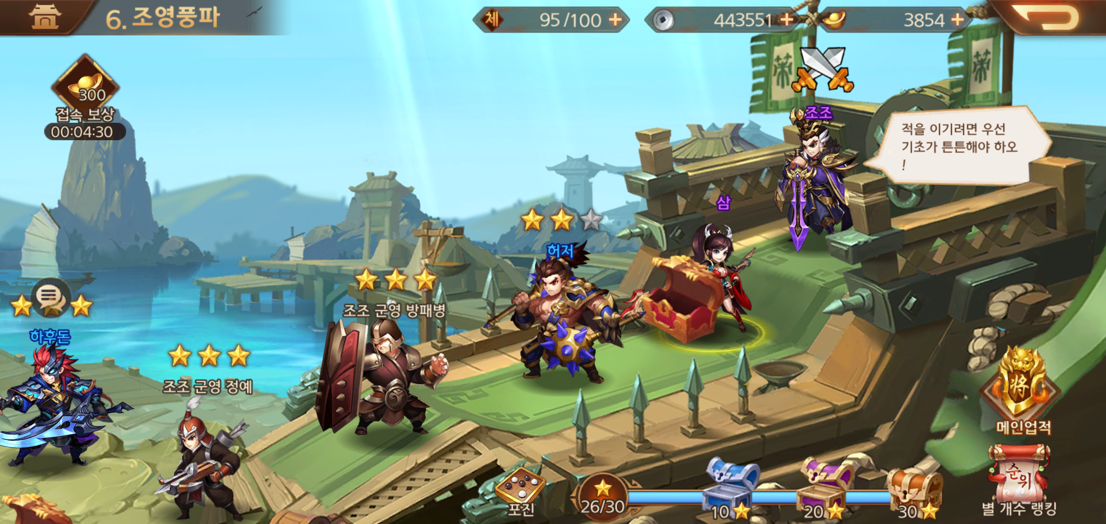 메인화면의 경우 전투를 위한 덱을 구성한 영웅들이 등장해 소속감을 느끼도록 해주고 있는데요, 출정, 천하 열전에 이르기까지 단순히 천하제패를 위한 모험이 아닌 삼국지가 가지고 있는 재미를 고스란히 즐길 수 있도록 해주고 있어 더욱 흥미진진한 플레이가 가능합니다.
