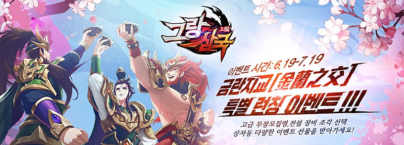 인게임 이벤트 외에도 공식카페에서도 풍성한 이벤트가 진행되고 있습니다. 금란지교 이벤트의 경우 그랑삼국을 함께 즐기고 싶은 친구를 초대하고 초대 받은 인원수에 따라 추가 보상이 주어지고 초대 받은 신규 유저에게도 보상이 주어지게 됩니다. 그뿐만 아니라 접속 시간에 따른 보상도 풍성하게 준비되어 있어 역대급 혜택을 받고 플레이를 즐길 수 있습니다.