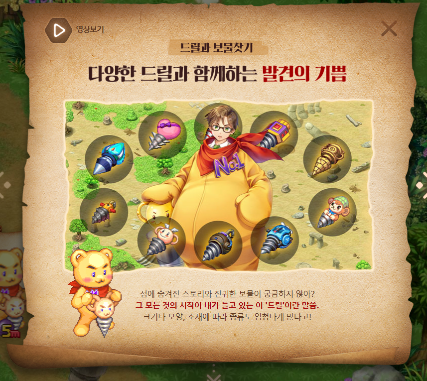 신작모바일게임 트릭스터M은 다양한 드릴과 함께 하는 재미와 각기 다른 모험이 펼쳐지는 하나의 월드. 그리고 다우징으로 발견하는 숨겨진 보물인 트레져 스팟과 스스로 만들어가는 모험을 바탕으로 색다른 재미를 즐길 수 있을 것으로 기대되는 내용들이 주를 이루고 있습니다.