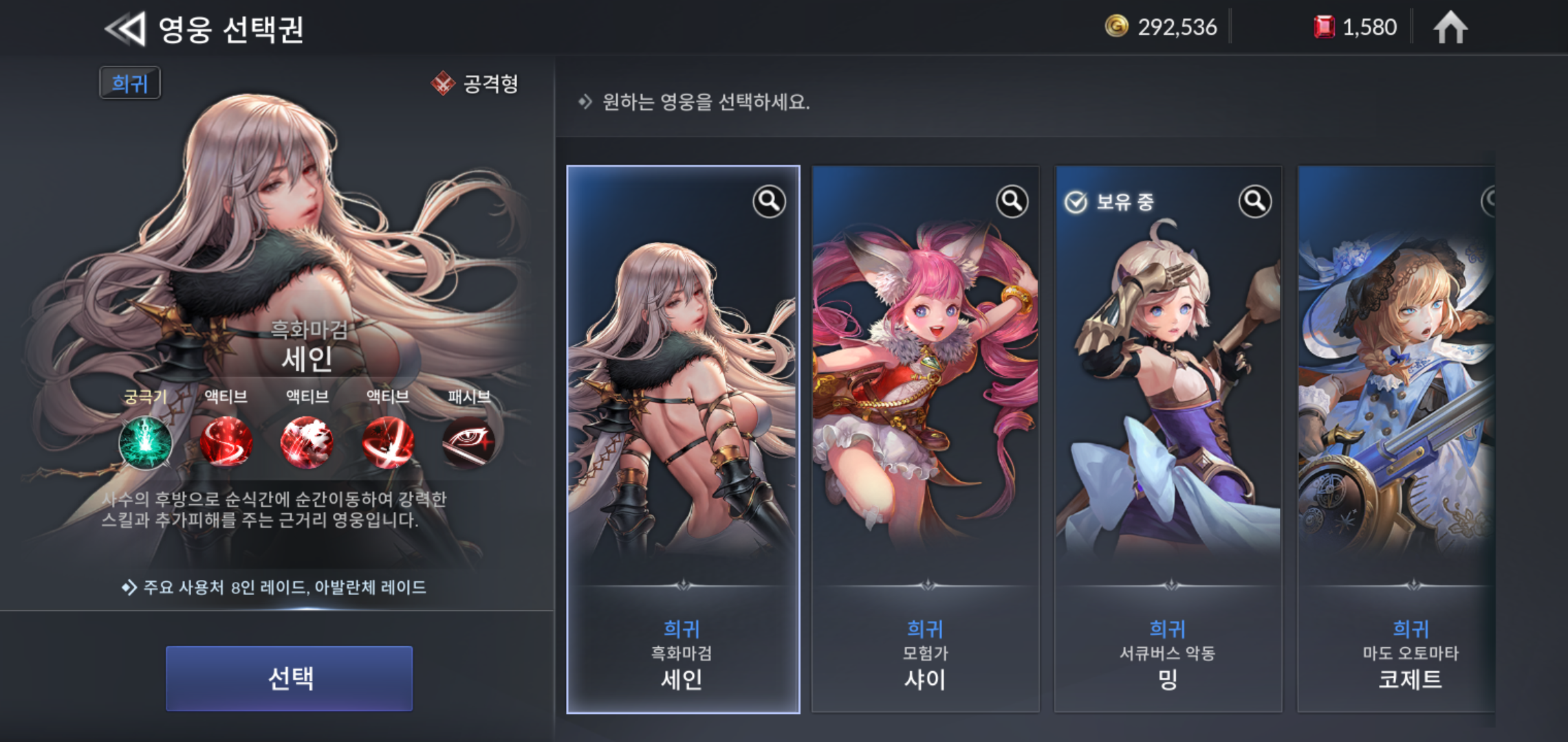 영웅이 가진 등급도 각기 다르기 때문에 보다 높은 등급의 영웅을 획득할 수록 유리합니다. 무한의 탑을 클리어 하고 희귀 영웅 선택권을 받을 수 있는데요, 이때 마음에 드는 영웅을 선택하는 것도 좋지만, 시일을 조금 두고 팀 편성에 꼭 필요한 영웅을 선택하는 것이 여러모로 유리합니다.