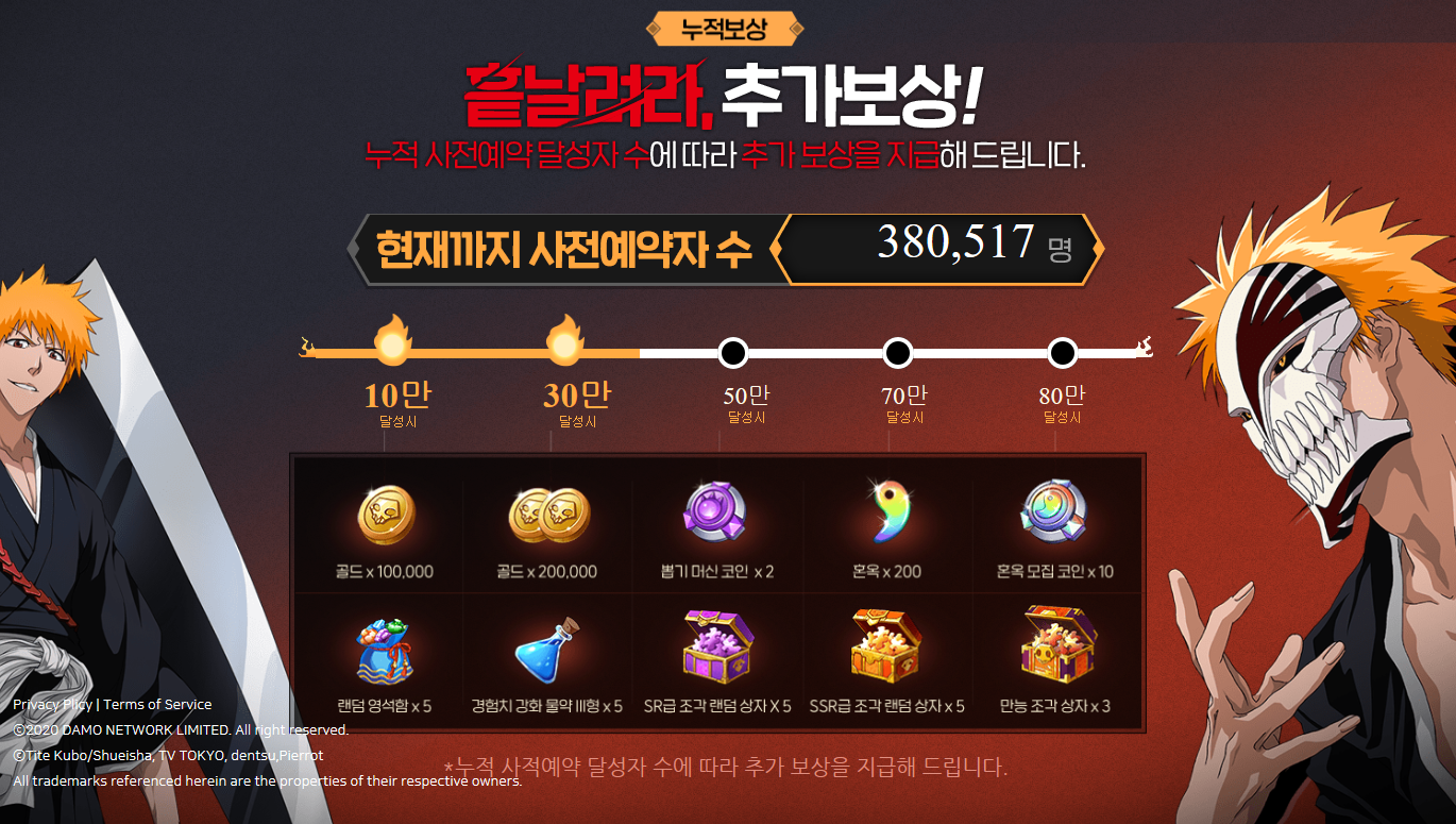 사전예약 페이지 : https://bleach.damo.games/#/p-reg
