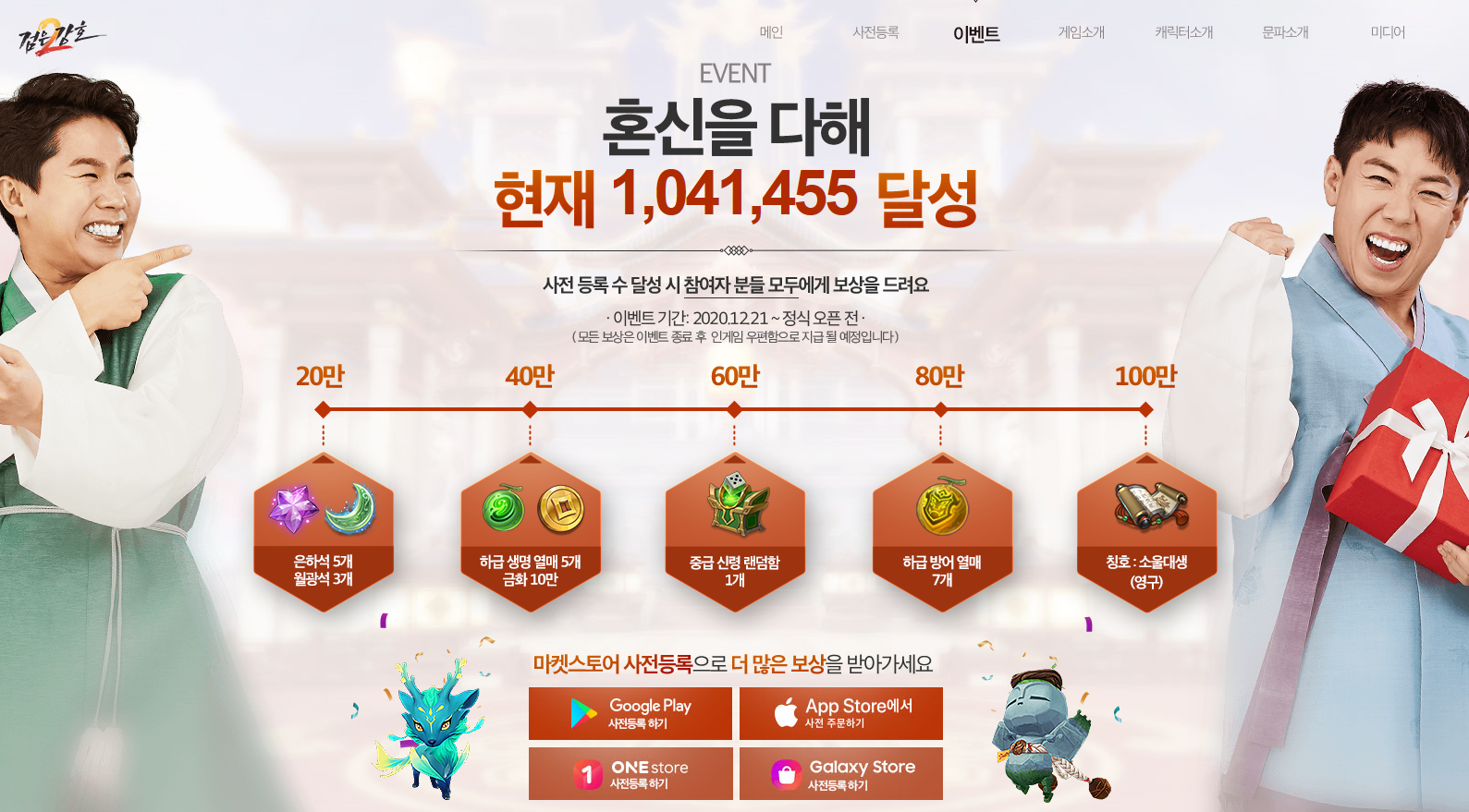 새해 시작과 함께 양세브라더스의 선택을 받은 모바일MMORPG 게임이 있으니 사전예약이 한창 진행 중인 검은강호2가 그 주인공입니다. 1월 20일 정식 론칭을 앞두고 있는 만큼 사전예약 시간이 얼마 남지 않았는데요, 영혼까지 채워줄 단 하나의 신작이라는 문장이 가슴을 설레이게 만들 정도 입니다.