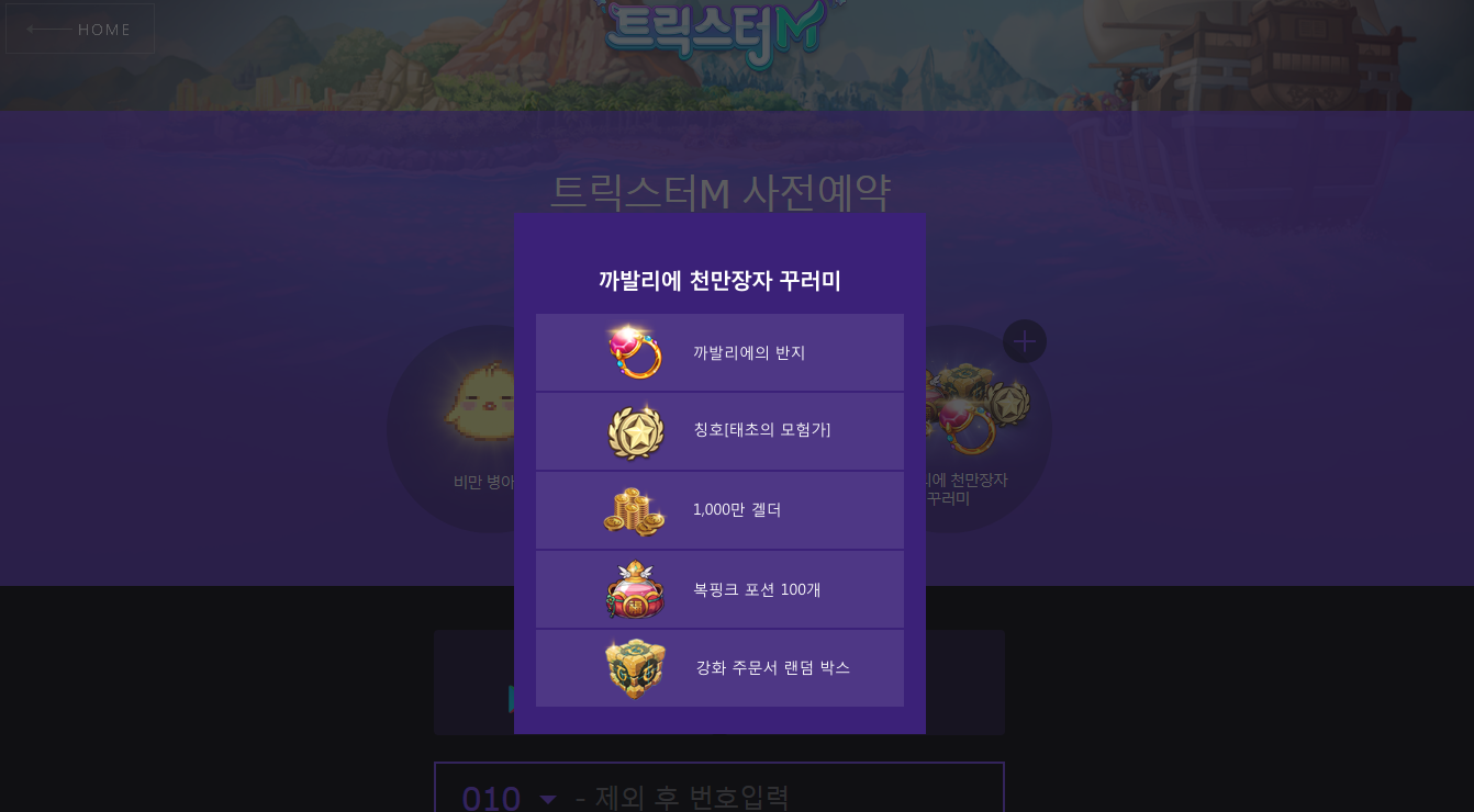 트릭스터M 은 정식론칭을 앞두고 사전예약이 한창 진행 중입니다. 파고 파도 끝없는 모험의 시작을 준비하는 사전예약은 참여한 모든 인원에게 비만 병아리, 포프리드릴 그리고 까발리에 천만상자 꾸러미를 지급하는데요, 까발리에 천만상자 꾸러미의 경우 까발리에의 반지를 포함해 칭소 [태초의 모험가], 1,000만 갤더, 복핑크 포션 100개 그리고 강화 주문서 랜덤 박스가 포함되어 있어 초반 다른 유저들에게 뒤쳐지지 않으려면 꼭 챙겨야 하는 아이템이기도 합니다.