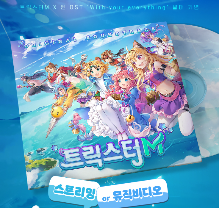 트릭스터M X 벤 OST With your everything 발매기념 이벤트도 진행 중입니다. 오는 1월 31일까지 진행되는 이번 이벤트는 음원 스트리밍 어플 또는 유튜브에서 [트릭스터M OST With your everything] 재생화면을 캡처한 후 #트릭스터M #트릭스터MOST #Withyoureverything #함께할게요 해시태그를 최소 1개 이상 선택하여 본인의 SNS에 등록하는 방식입니다.