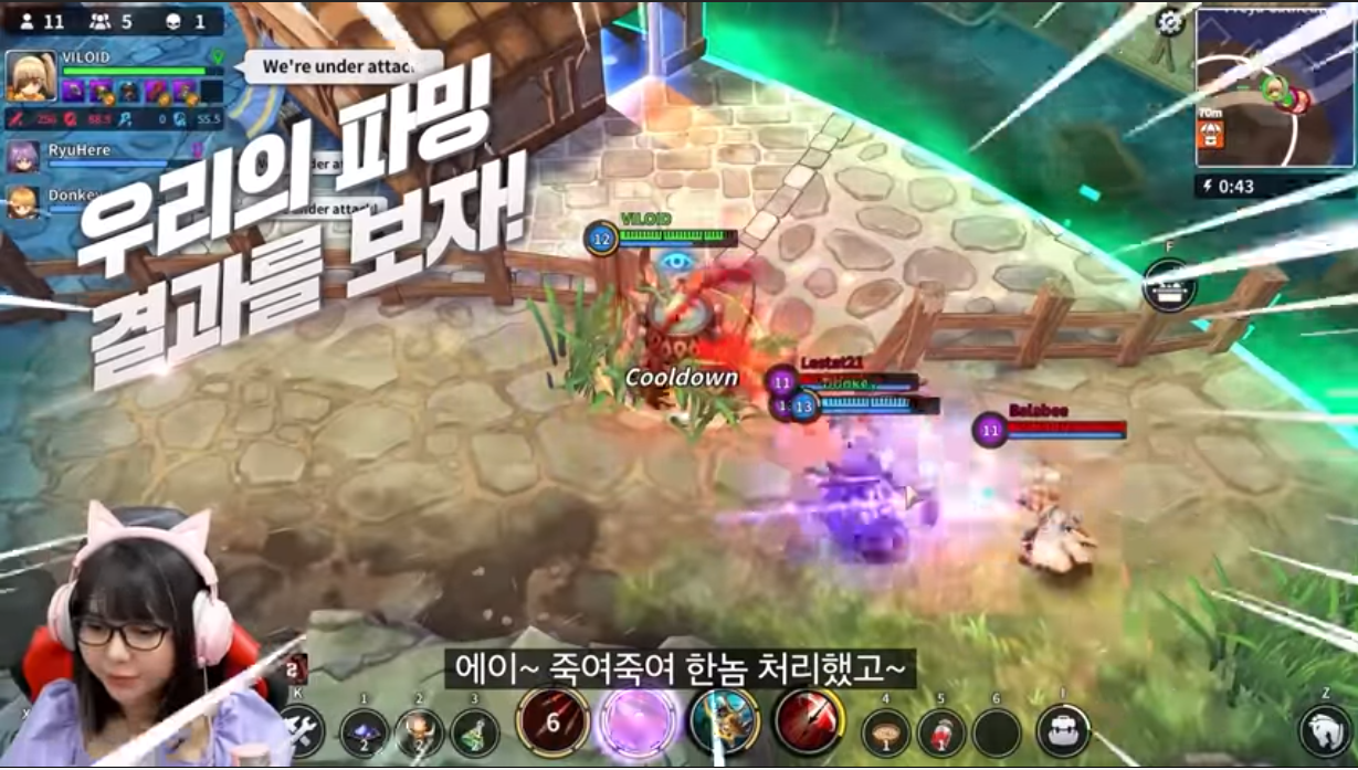 해외 유저들이 로얄크라운을 즐기는 방식도 다양했는데요, 계획 해두었던 플레이를 펼치거나, 상황에 따른 움직임으로 즐기는 모습이었습니다. MOBA 장르가 가지고 있는 멀티플레이어의 온라인 배틀 방식에 있어 귀여움이 가득한 캐릭터를 활용해 긴장감 넘치는 전투를 벌이는 모습도 인상적이었는데요, 플레이를 즐기는 해외크리에이터들의 반응은 국내 출시에 대한 기대감을 높이기에 충분할 정도입니다.