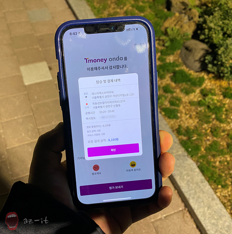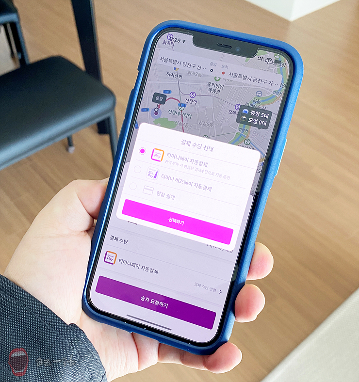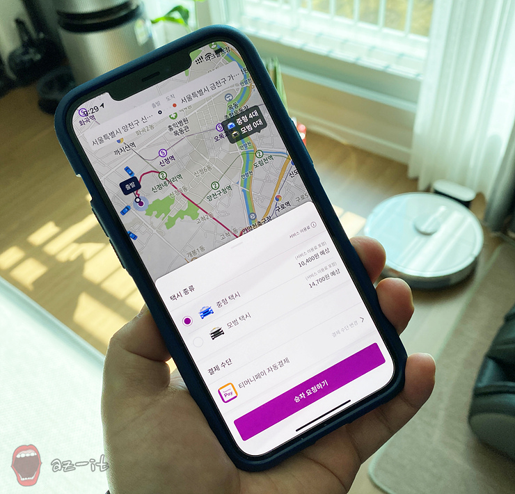 택시를 이용해 출근한 당일 저녁 집으로 돌아가기 위해 티머니onda를 이용해 택시를 호출했습니다. 조건이나 거리는 동일하지만 막히는 구간이 없어서인지 예상 운행 요금은 약간의 차이가 났지만, 피곤했었기에 빠르게 집으로 갈 수 있다는 사실만으로도 만족스러웠습니다. 결제도 티머니를 이용해 가볍게 끝내주고 말이죠.