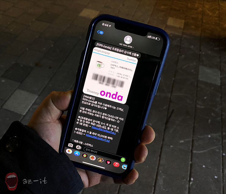 티머니onda 프로탑승러 감사제 참여 방법도 간단합니다. 티머니onda앱을 이용해 일주일에 2회 탑승하면 커피쿠폰이 문자로 도착하는데요, 감사제가 진행되는 4주 동안 주 1회 월 4회까지 참여 가능해 스타벅스 커피를 받을 수 있습니다. 특히 이동 거리에 제한이 없이 무조건 일주일에 두번 사용하면 스타벅스 커피쿠폰을 쓱!
