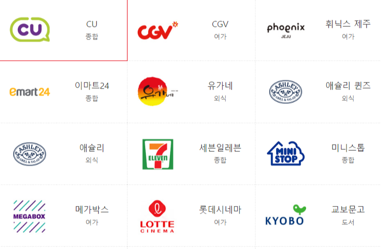 모바일앱이나 바코드를 사용할 수 있는 온프라인 사용처도 다양하게 구성되어 있어 사용에 불편함이 없을 정도입니다. 주변에서 쉽게 볼 수 있는 편의점은 물론, CGV라던가 교보문고, 애슐리 등 각종 편의시설부터 먹거리 등 다양하게 구성되어 있어 모바일문화상품권의 활용도에 대해선 고민할 필요가 없을 듯합니다.
