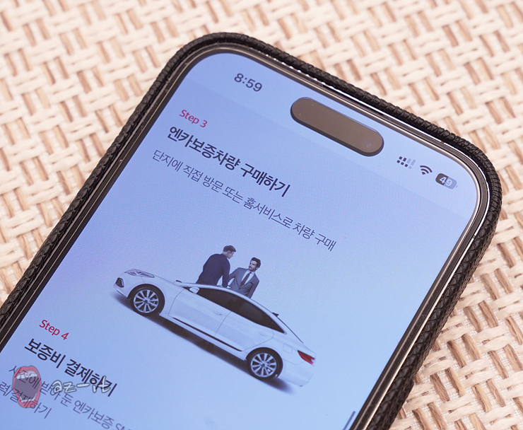 차량을 구매했다면 사전에 받아둔 엔카보증 SMS 가입링크를 클릭해 가입 정보를 입력하고 보증료를 결제해야 합니다. 보증료를 결제하면 엔카 보증서와 세부약관 다운로드가 가능합니다. 이후 선택사항으로 엔카닷컴 마이페이지에서 엔카보증코드를 등록하면 해당 차량에 대한 이력관리가 가능합니다.