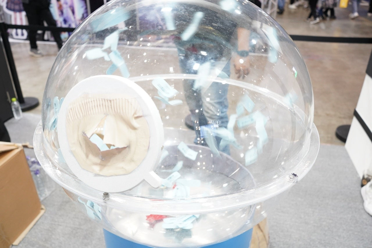 미션을 완료하고 진행되는 가챠!! 직접 손을 넣어서 가챠를 뽑을 수 있는데요, 캐릭터 아크릴 등신대부터 대형 쇼핑백, L홀더 파일 그리고 마우스 장패드까지 로스트소드 캐릭터를 메인으로 한 굿즈가 가득 준비되어 있어 노려볼만합니다. 탐나는 굿즈만 모여 있는 것 같아 욕심이 절로 생길 정도입니다.