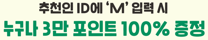 친구초대 이벤트도 진행 중인데요, 초대받은 친구가 15,000원 이상 요금제 가입 시 초대한 친구와 초대받은 친구 모두 M스토어에서 이용 가능한 3만 포인트를 받을 수 있습니다. 6월 한정으로 친구에게 초대받지 못했다고 하더라도 추천인 ID에 M을 입력하면 네이버페이 3만 포인트를 증정하니 신규회원이라면 놓치지 말고 꼭 챙겨보세요.