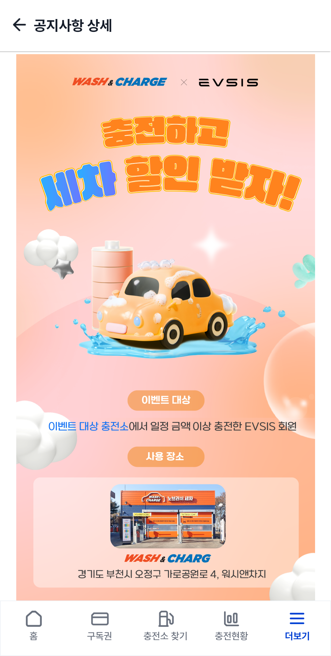 이 밖에도 세차 할인 이벤트를 비롯해 다양한 제휴 혜택이 준비되어 있습니다. 특히 롯데 계열 전기차 충전 기업으로서, 롯데마트·홈플러스 등 제휴처의 2시간 무료 주차, 롯데멤버스 포인트 적립 및 사용이 가능하다는 점도 큰 장점인 만큼, 전기차 운행의 필수 앱, 이브이시스를 통해 보다 합리적이고 편리한 충전 생활을 즐겨보시기 바랍니다.