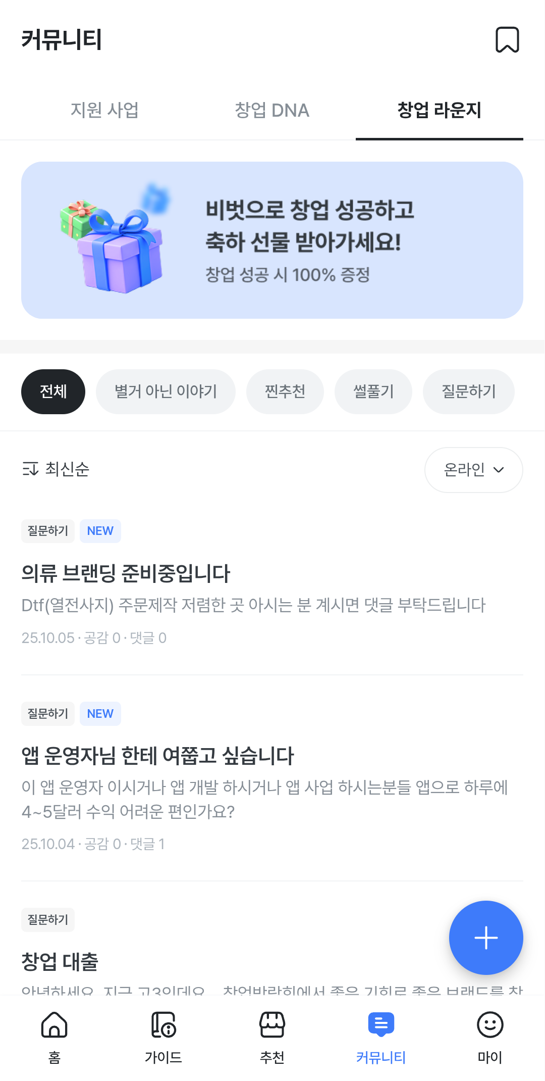 창업 이후에도 궁금한 부분들이나 고민되는 사항들을 비벗 커뮤니티를 통해 정보를 주고받을 수 있습니다. 아무래도 비슷한 경험을 가지고 있는 분들의 조언이 필요한 경우도 있고, 궁금한 부분들을 해결할 수 있는 창구 역할을 하고 있어 창업 이후에도 많은 도움을 받을 수 있어 유용합니다.