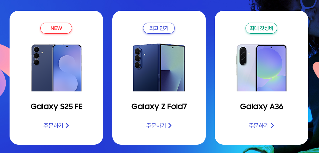 갤럭시 S25 시리즈, 갤럭시Z 시리즈, 갤럭시 A36, A15, Jump4 등 플래그십 모델부터 가성비 좋은 모델까지 예산, 용도, 성능 기준에 따라 선택 폭이 상당히 넓다는 점이 인상적입니다.